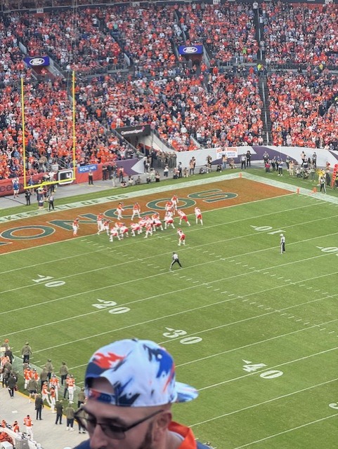 Sunday afternoon was the highlight of the entire trip , game day at Empower Field at Mile High. As soon as we arrived at the stadium, the atmosphere was unreal. Fans from both sides were already gathered outside, grilling, cheering, and showing off their team colors. The mix of red and orange made the entire parking lot feel like a huge celebration.